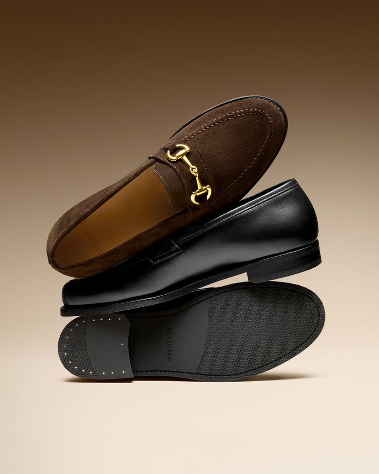 Our Karlberg loafer offers a modern interpretation of this iconic style. Choose the black calf option for a sophisticated, understated look, or make a statement with the version in our custom dark brown suede, accented by a striking golden buckle.